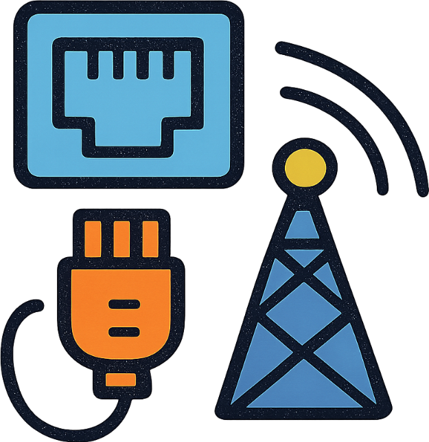 תשתיות תקשורת הן כל המערכות והחיבורים הפיזיים והלוגיים המאפשרים העברת מידע ונתונים בין מכשירים שונים. מדובר בכבלים, רשתות מחשבים, מודמים, ראוטרים, מתגים, ועוד כל רכיב אחר במערכת התקשורת של העסק או הבית. תשתית תקשורת היא היסוד שמאפשר חיבור בין המכשירים, ומספקת את המהירות והאמינות הנדרשת להעברת המידע.